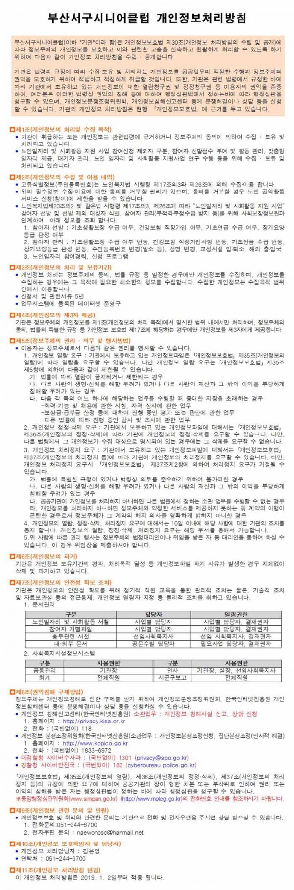 부산서구시니어클럽 개인정보처리방침 페이지 정보 작성자 부산서구시니어클럽 댓글 0건 조회 10,995회 작성일 19-10-18 15:37 본문 부산서구시니어클럽 개인정보처리방침 목록 이전글2020년 노인일자리 및 사회활동지원사업 참여자 모집 19.11.28 다음글부산서구시니어클럽 2019년 4차 추가경정 세입세출예산서 공고의 건 19.10.14 댓글목록 댓글목록 등록된 댓글이 없습니다.