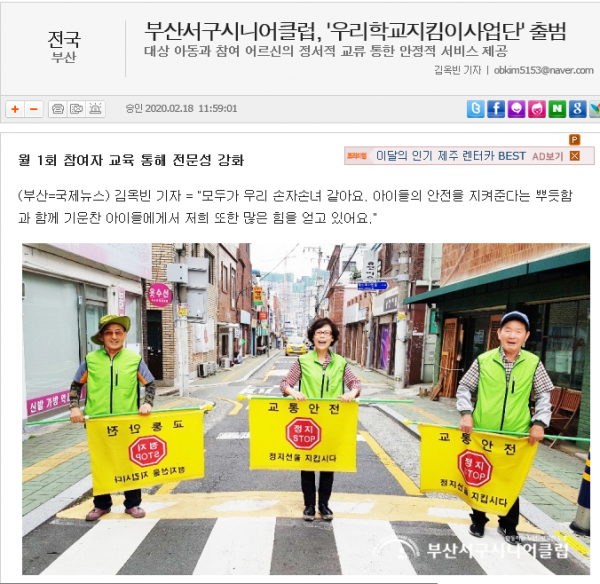 [언론보도:국제뉴스]부산서구시니어클럽,'우리학교지킴이사업단'출범 페이지 정보 작성자 부산서구시니어클럽 댓글 0건 조회 7,448회 작성일 20-02-20 17:07 본문 국제뉴스 2020면 2월 18일 김옥빈기자 [기사원본링크] http://www.gukjenews.com/news/articleView.html?idxno=1243005 목록 이전글노인에 반하다! 노인은 일할 수 없는 사람이라는 생각에 반대합니다! 20.09.21 다음글[언론보도:복지유관기관]상큼한 노후를 만들기 위해 일하는 100세! 20.02.03 댓글목록 댓글목록 등록된 댓글이 없습니다.