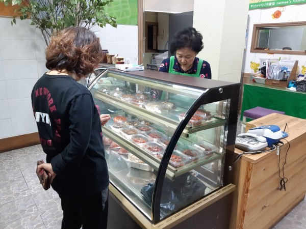 할매즈 푸드 작업장 판매 현장 페이지 정보 작성자 부산서구시니어클럽 댓글 0건 조회 10,374회 작성일 18-11-14 15:22 본문 할매즈 푸드 작업장에서 손님에게 반찬을 팔고 있는 참여 어르신의 모습입니다. 목록 이전글어르신들과 함께하는 행복한 노후를 위한 가을 명상 여행 18.11.14 다음글할매즈 푸드 작업장 18.11.14 댓글목록 댓글목록 등록된 댓글이 없습니다.